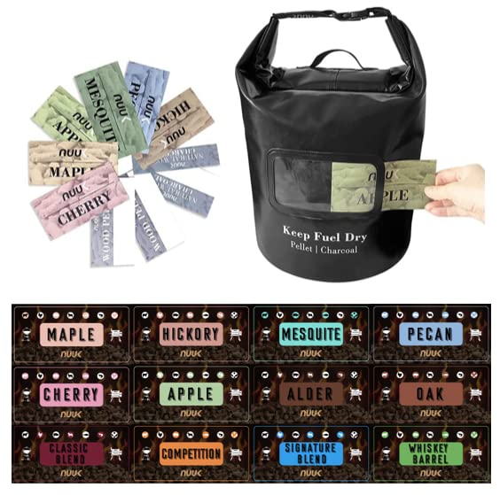 NUUK 20 LBs Pellet/Charcoal Fuel Storage Bucket, & Magnet Wood Pellet Flavor Label Combo